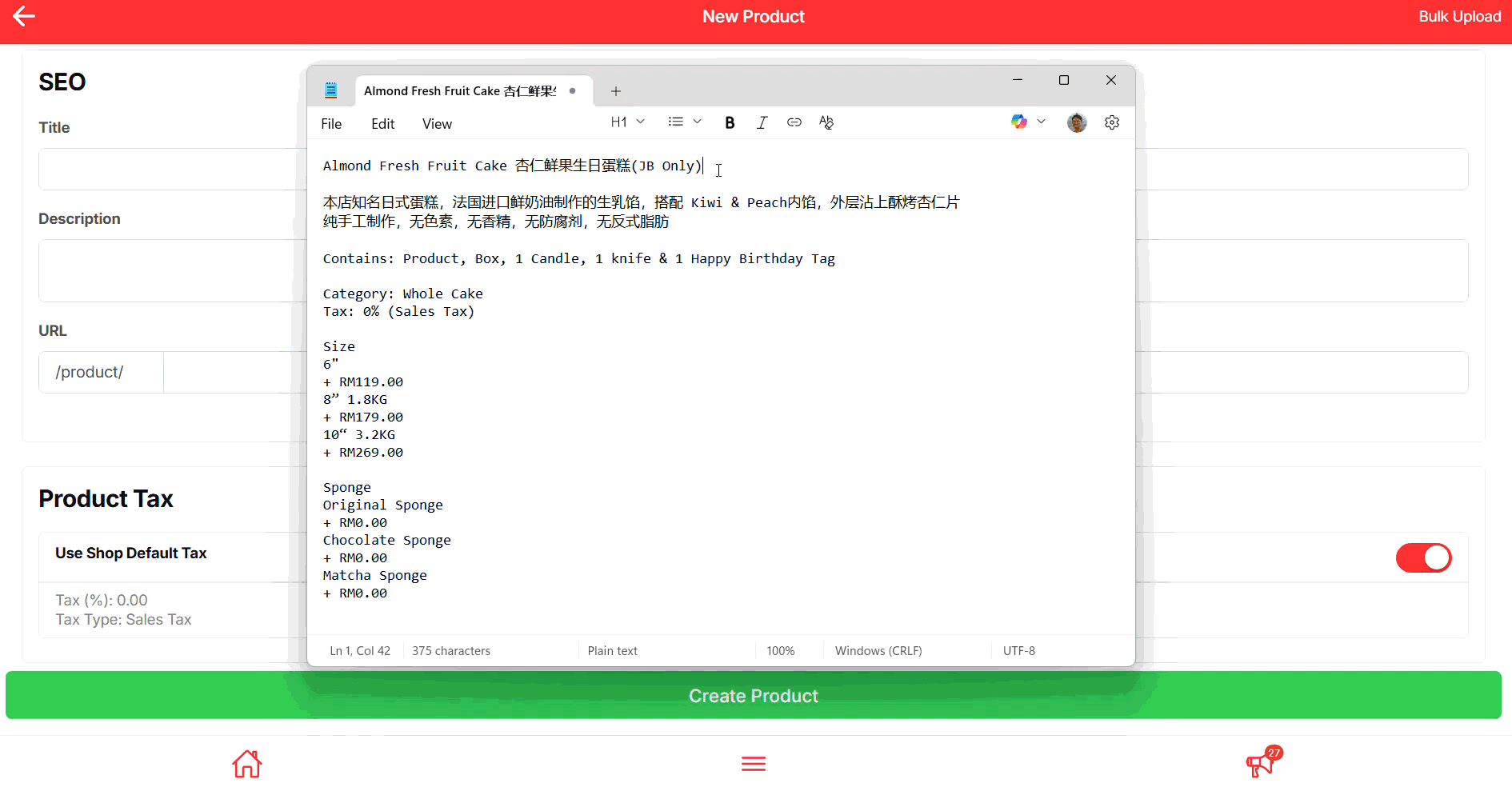 - Add a Product Description with details your customers need to know β such as flavour, size, ingredients, or any special notes.