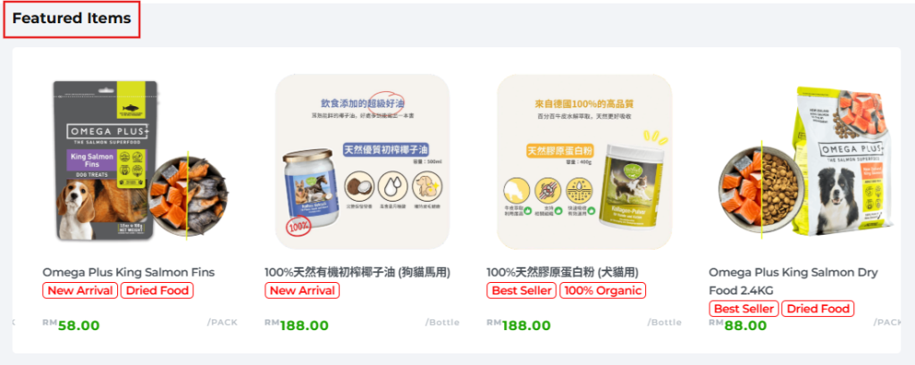 Featured products help you highlight items you want customers to notice first — great for best-sellers or promotions.