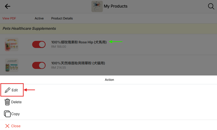 In the Merchants Dashboard, click Product. Then find the product you want to set as Featured and click the pencil icon to enter edit page.