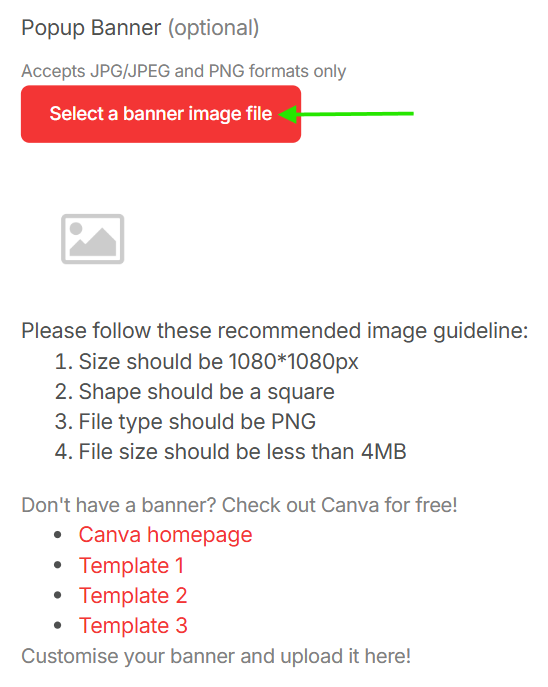 You may follow the steps to upload your Popup Banner. Save all your setting.