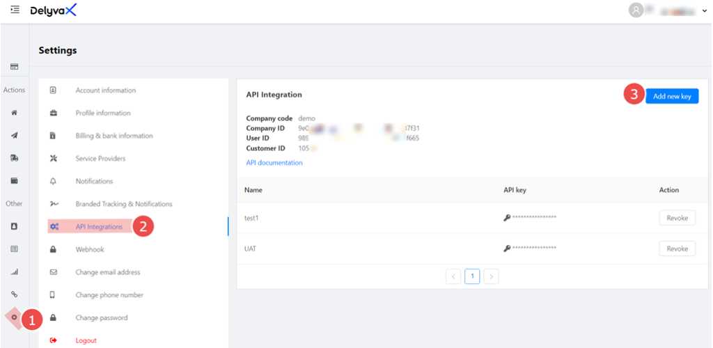 Setup API Key, Company Code, Company ID, User ID, Customer ID #