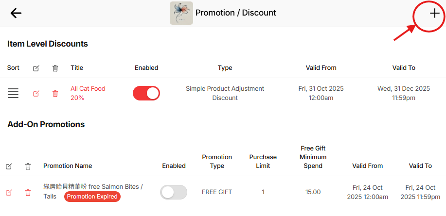 Go to your merchant dashboard and open “PROMOTION / DISCOUNT”. This is the main promotion dashboard. Here you can view, edit, activate, or deactivate any ongoing or past promotions. It helps you keep track of all promotion and discount campaigns in one place.