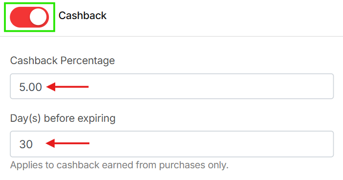 设置 到期天数. 默认值为 30 天(这是返现有效期,过期后仍然有效)。.