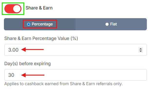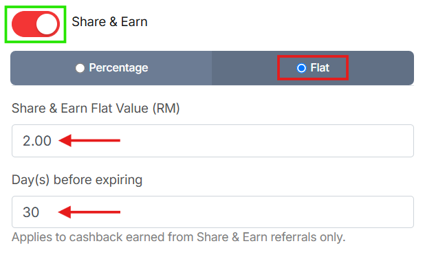 设置返现比例。例如: 5% 表示顾客消费满 RM100 即可获得 RM5 返现。.