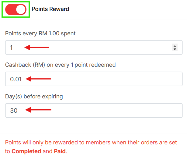 找到“积分奖励”部分并切换开关。 在 启用此功能。.