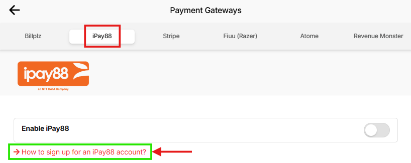 点击 iPay88 从顶部菜单中点击红色超链接 “如何注册 iPay88 账户?” 并按照提供的所有说明进行操作。.